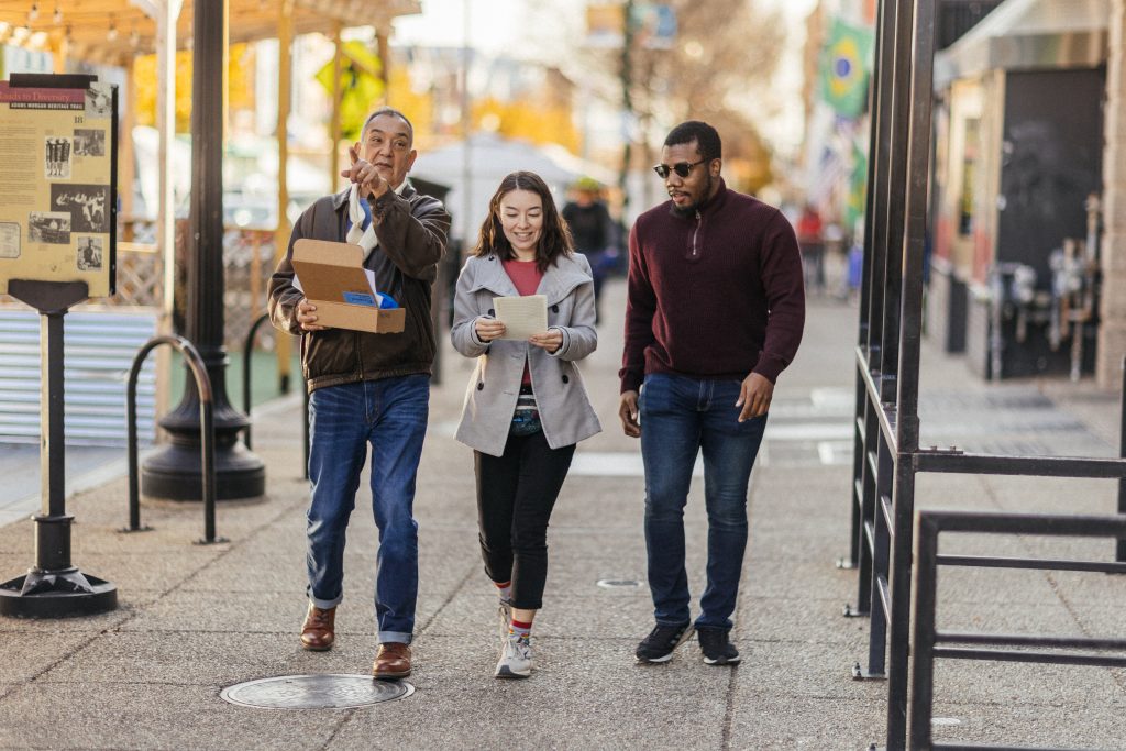 All five locations, as well as the final performance location, are metro accessible. If you are unable or prefer not to travel to any chapter destination, we provide alternative at-home instructions.